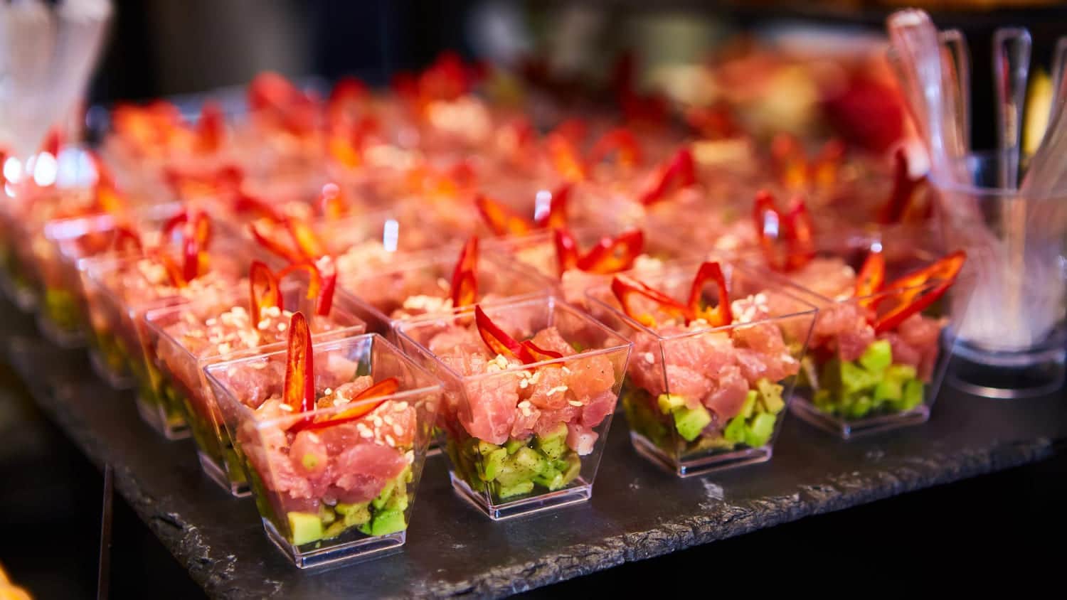 En tant que traiteur original à Québec, Équilibre vous propose un concept de stations thématiques inédit et gourmand. Pour un événement culinaire original, optez pour un service de traiteur qui sort de l’ordinaire. Vous souhaitez que nous développions pour vous une station à ce sujet, comptez sur Équilibre, pour mener à bien votre projet. Les stations thématiques peuvent être de tous genres : des tartares mélangés sur place par nos cuisiniers expérimentés, des stations adaptées au thème de votre événement ou une sélection de fromages québécois pour apprécier notre terroir. Vos projets n’ont pas de limite pour Équilibre, votre traiteur original à Québec!